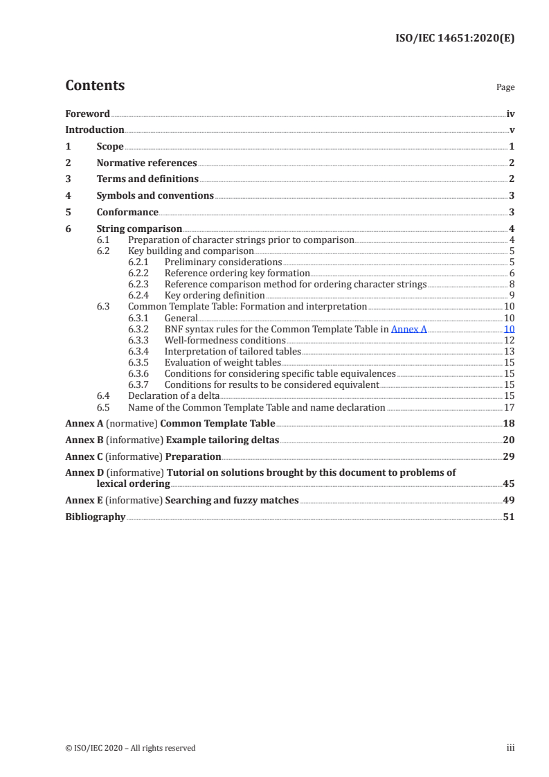 - Non‑mandated aspects: ISO/IEC 14651 does not require a specific internal key format, UI, context‑dependent ordering, or particular string preparation method (though preparation is normally necessary - see Annex C).