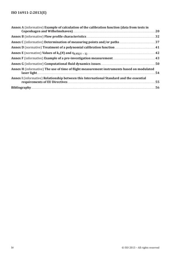 - Informative and normative annexes provide worked examples, flow profile characteristics, CFD issues, time-of-flight laser use, and relationship to EU directives.