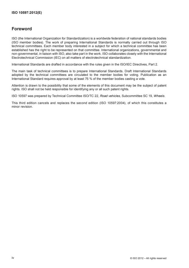 ISO 10597 was prepared by Technical Committee ISO/TC 22, Road vehicles, Subcommittee SC 19, Wheels.