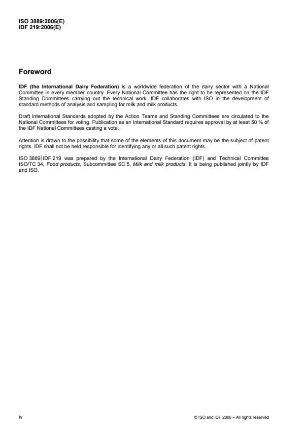ISO 3889⎪IDF 219 was prepared by the International Dairy Federation (IDF) and Technical Committee