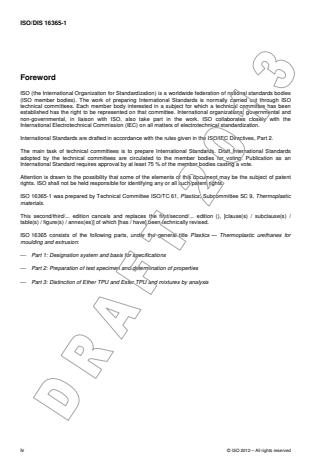 ISO 16365-1:2014 - Plastics -- Thermoplastic polyurethanes for moulding and extrusion