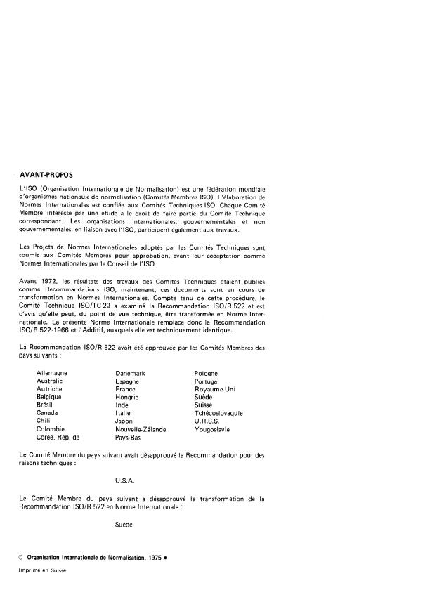 Committee lSO/TC 29 has reviewed ISO Recommendation R 522 and found it