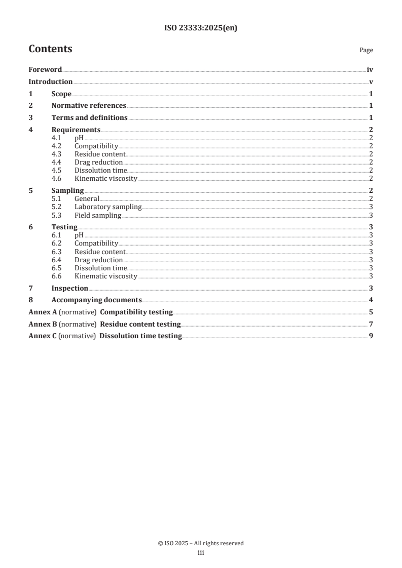 Keywords: ISO 23333:2025, slick water, hydraulic fracturing, shale gas, drag reduction, fracking fluid testing, compatibility testing, residue content, kinematic viscosity, sampling and testing, upstream natural gas.