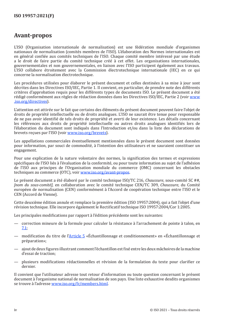 ISO 19957:2021 - Chaussures — Méthodes d'essai relatives aux talons — Résistance à l'arrachement de pointe à talon Released:9/14/2021