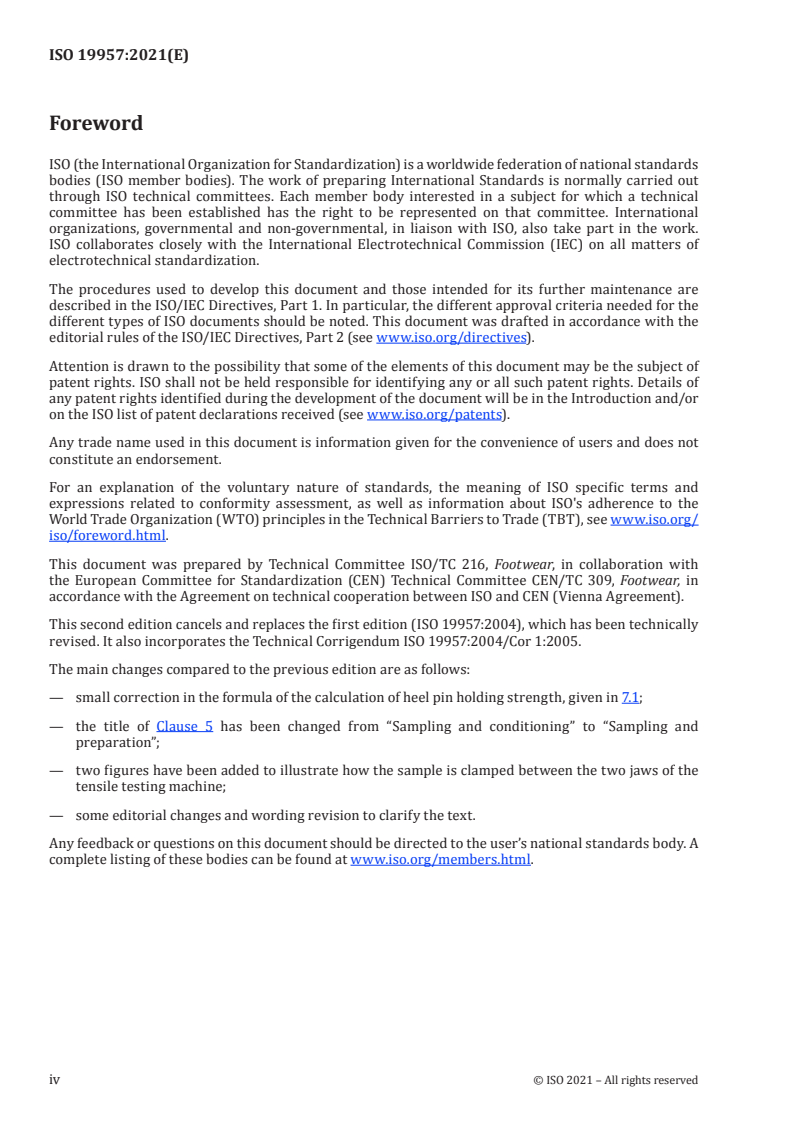 ISO 19957:2021 - Footwear — Test methods for heels — Heel pin holding strength Released:9/14/2021