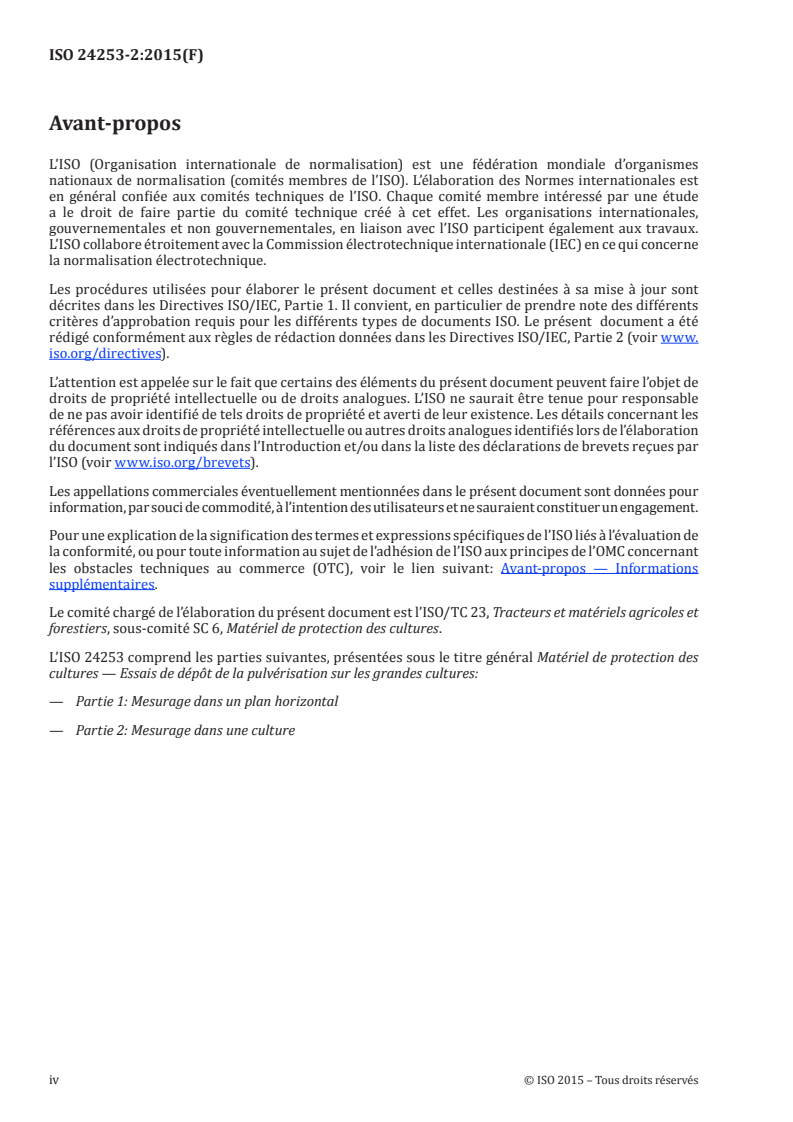 Keywords: ISO 24253-2:2015, spray deposition test, crop protection equipment, measurement in a crop, boom sprayers, tracers, collectors, meteorological monitoring.