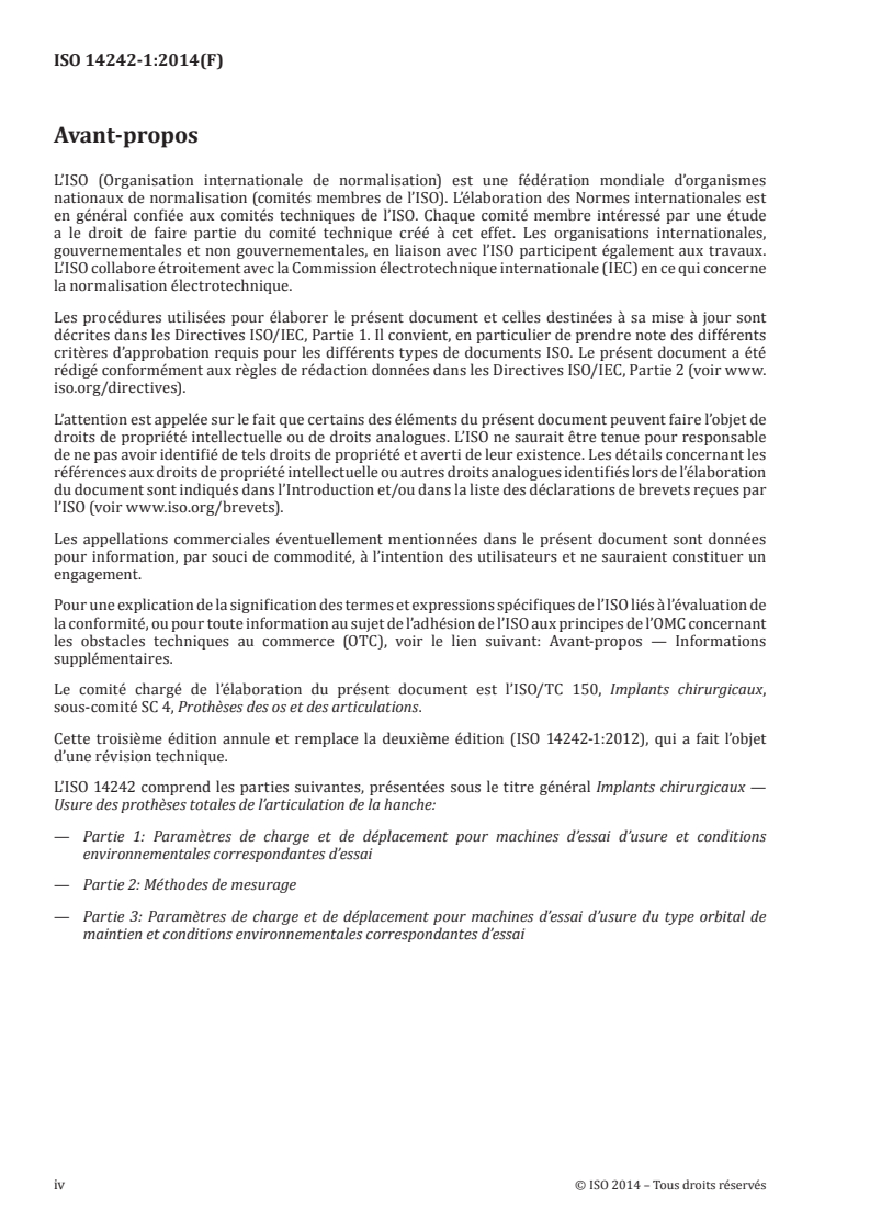 Cette troisième édition annule et remplace la deuxième édition (ISO 14242-1:2012), qui a fait l’objet