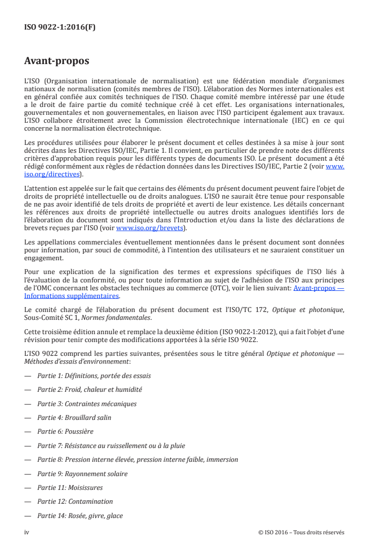 Cette troisième édition annule et remplace la deuxième édition (ISO 9022-1:2012), qui a fait l’objet d’une
