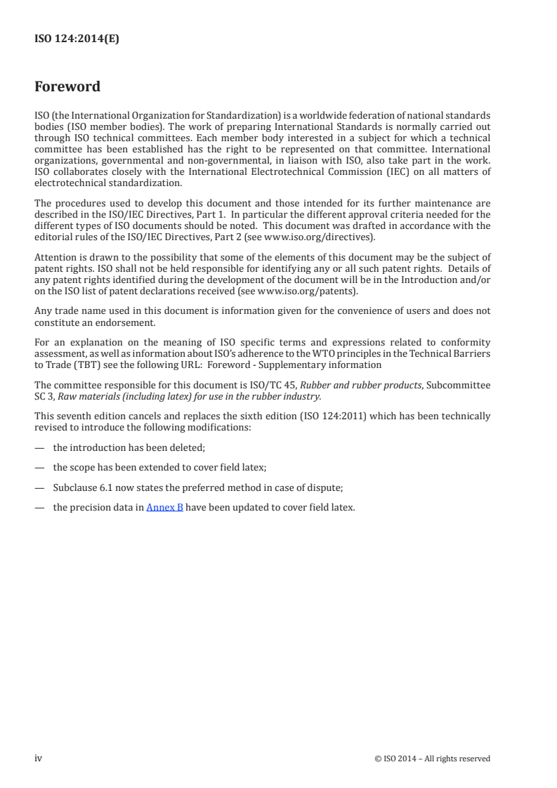 - Latex producers and processors use ISO 124:2014 for product specification, batch control and concentration checks.