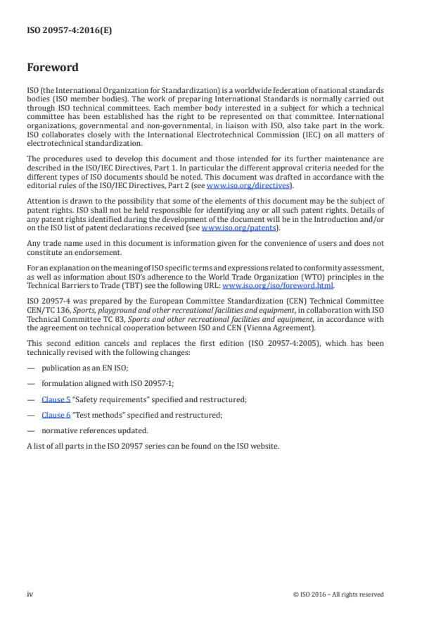 L’ISO 20957-4 a été élaborée par le comité technique CEN/TC 136, Équipements et installations pour le