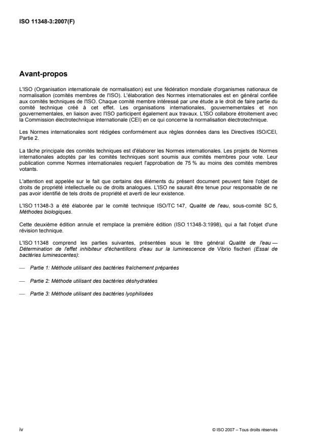 ISO 11348-3:2007 - Qualité de l'eau -- Détermination de l'effet inhibiteur d'échantillons d'eau sur la luminescence de Vibrio fischeri (Essai de bactéries luminescentes)