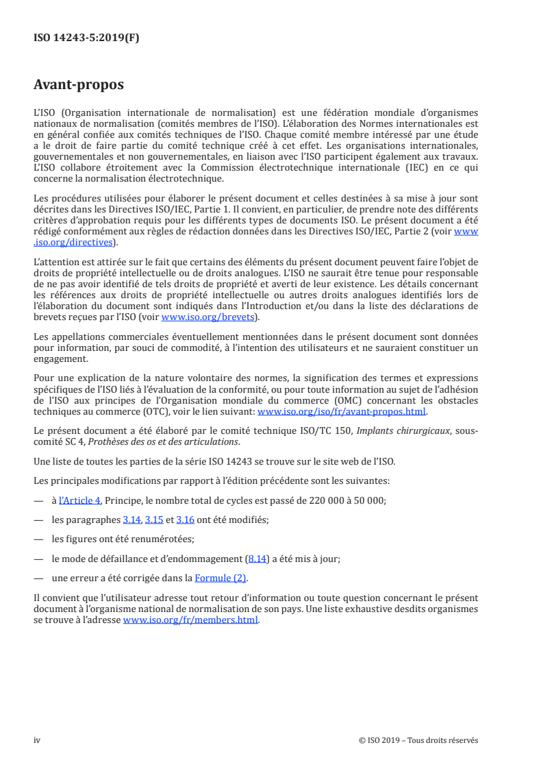 ISO 14243-5:2019 - Implants for surgery — Wear of total knee prostheses — Part 5: Durability performance of the patellofemoral joint Released:5/23/2019