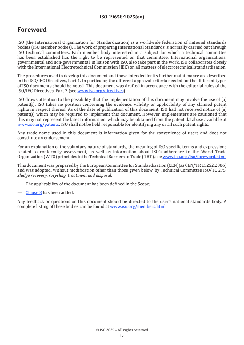 - Aligned with the scope of ISO/TC 275 (sludge recovery, recycling, treatment and disposal).