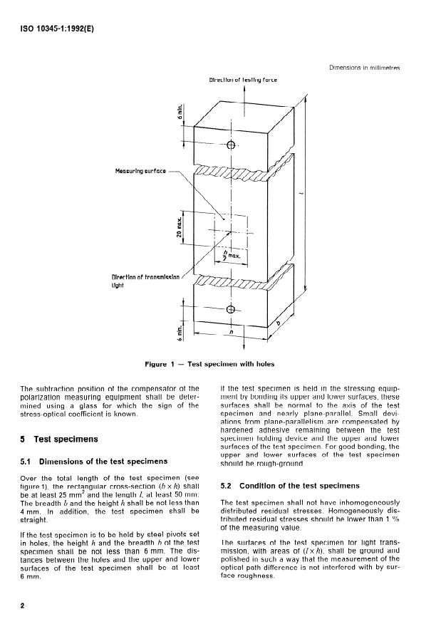 Keywords: ISO 10345‑1:1992, stress‑optical coefficient, tensile test, glass, birefringence, polarization measurement, optical path difference.