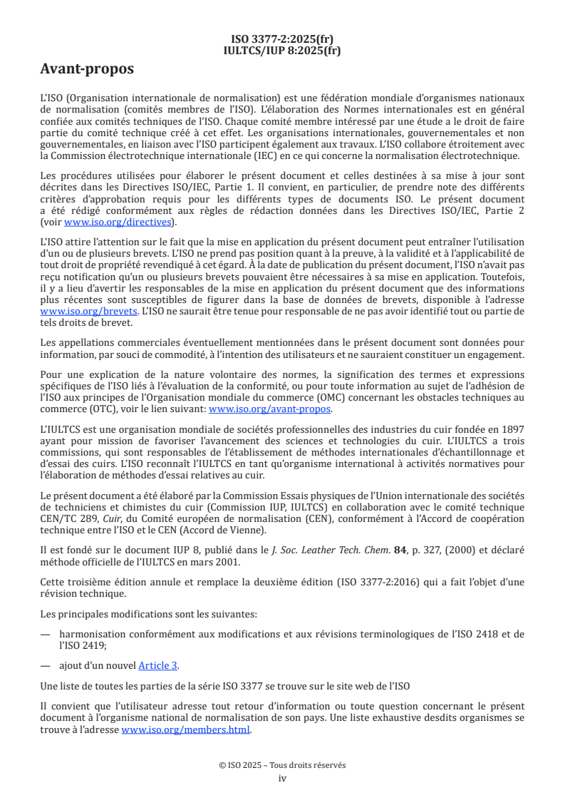 Cette troisième édition annule et remplace la deuxième édition (ISO 3377-2:2016) qui a fait l’objet d’une