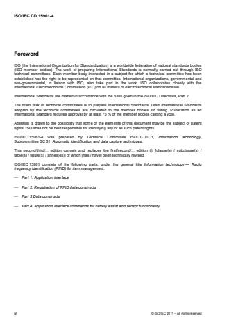 ISO/IEC 15961-4 is essential for anyone implementing interoperable RFID sensor solutions that require standardized application commands for battery assist and sensor control. Keywords: ISO/IEC 15961-4, RFID sensors, battery assist, application commands, sensor data, ISO/IEC 24753, item management.