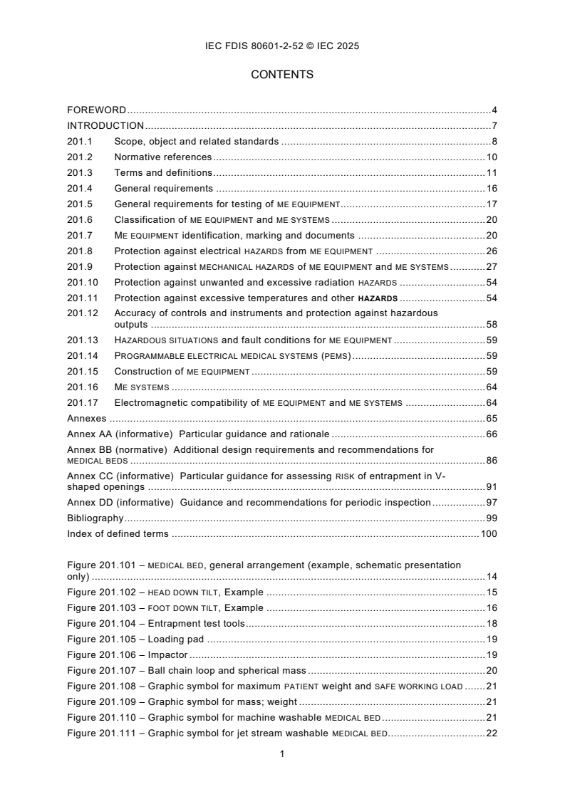 Keywords: IEC 80601-2-52, medical beds standard, patient entrapment, side rails, safe working load, medical electrical equipment, IEC/FDIS 80601-2-52, bed safety, biomedical compliance.