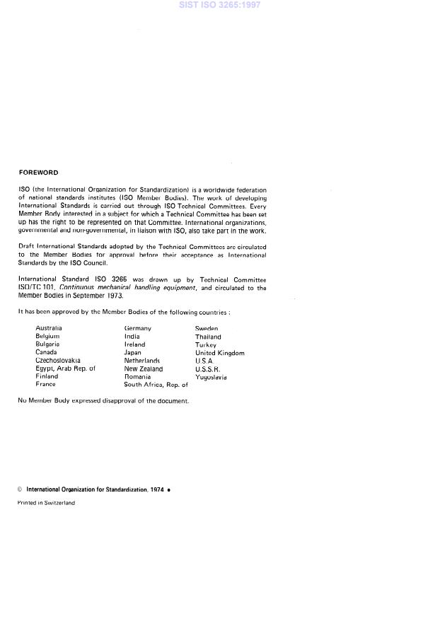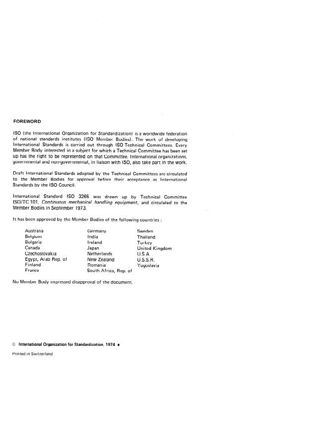 ISO 3265:1974 is classified under the following ICS (International Classification for Standards) categories: 53.040.99 - Other continuous handling equipment. The ICS classification helps identify the subject area and facilitates finding related standards.