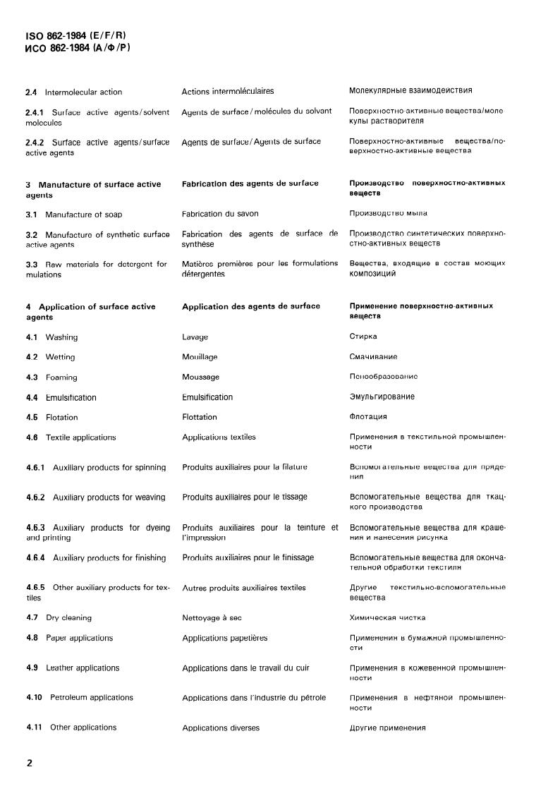 해당 기사는 ISO 862:1984 표준을 다루고 있는데, 이는 표면활성제 분야에서 흔히 사용되는 용어집을 제공한다. 이 용어 중에는 텍스타일 응용, 드라이 클리닝 등을 위한 구체적인 용어뿐만 아니라 다른 분야를 위한 용어도 소개될 수 있다고 한다. 추가로, 부록 A에는 표면 현상 및 표면활성제 제조에 직접 관련된 과학적 용어가 포함되어 있으며, 부록 B에는 표면활성제 분야에 특정되지 않은 일반적인 용어들이 포함되어 있다고 한다.
