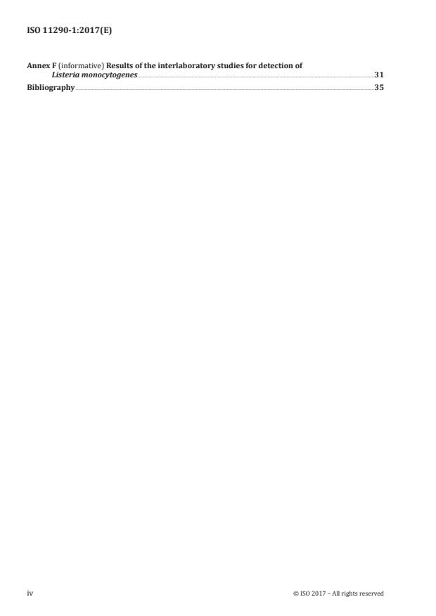 ISO 11290-1:2017 is a standard published by the International Organization for Standardization (ISO). Its full title is "Microbiology of the food chain - Horizontal method for the detection and enumeration of Listeria monocytogenes and of Listeria spp. - Part 1: Detection method". This standard covers: ISO 11290-1:2017 specifies a horizontal method for - the detection of L. monocytogenes, and - the detection of Listeria spp. (including L. monocytogenes). ISO 11290-1:2017 is applicable to - products intended for human consumption and for the feeding of animals, and - environmental samples in the area of food production and food handling.