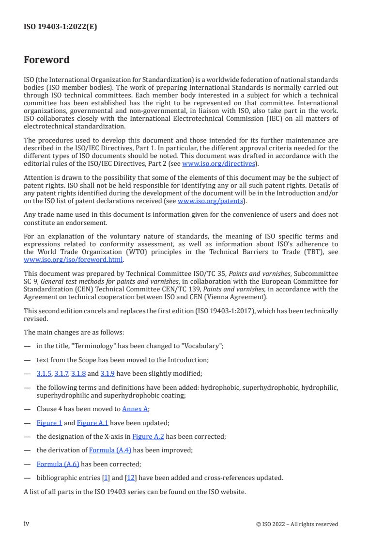 ISO 19403-1:2022 is a standard published by the International Organization for Standardization (ISO). Its full title is "Paints and varnishes - Wettability - Part 1: Vocabulary and general principles". This standard covers: This document specifies general terms and definitions for wettability. Some general principles are described in Annex A. This document is intended to be used in conjunction with ISO 4618.