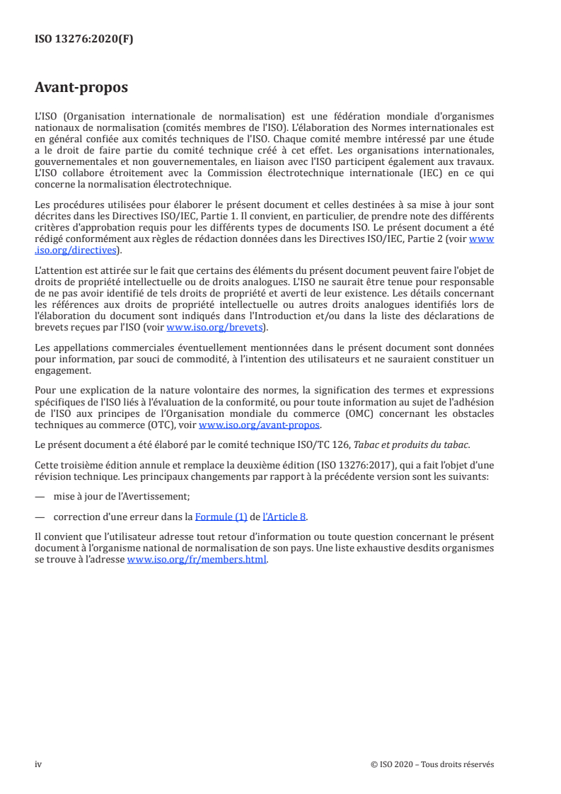 Cette troisième édition annule et remplace la deuxième édition (ISO 13276:2017), qui a fait l’objet d’une