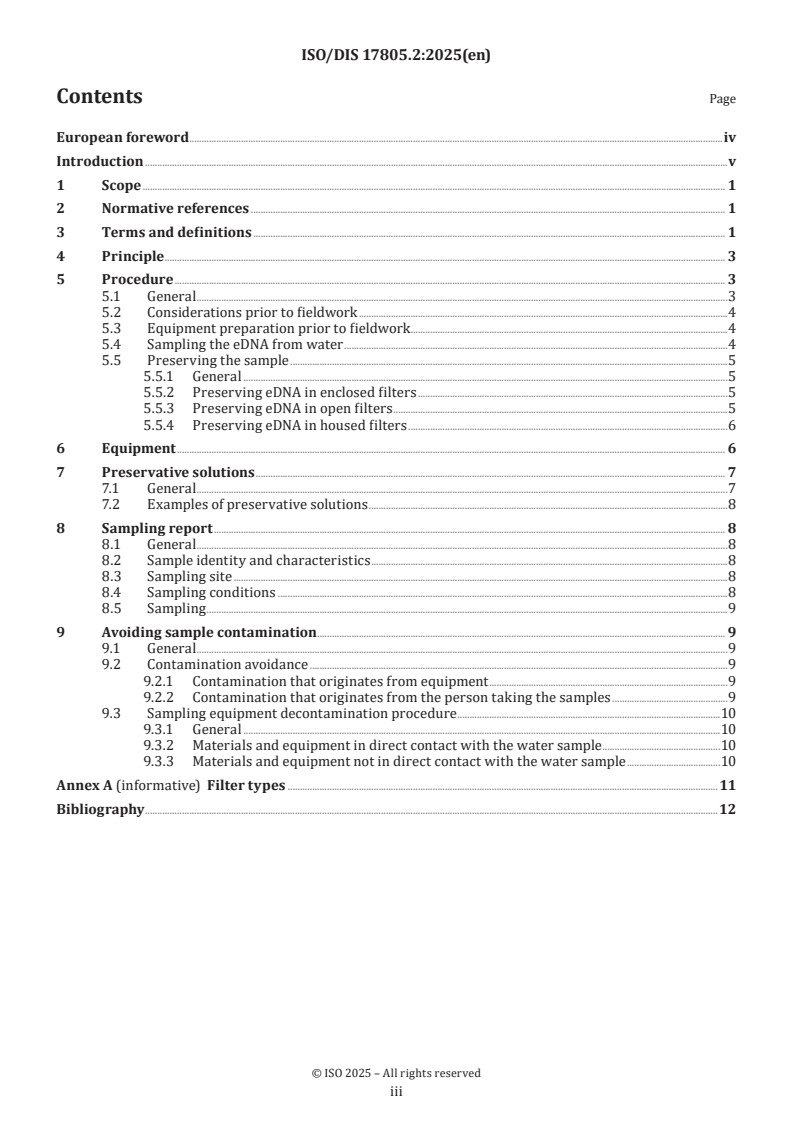 Keywords: ISO 17805, water quality, environmental DNA, eDNA sampling, sample preservation, aquatic biodiversity, standardization, contamination prevention, water monitoring, filter types, preservation solutions, water sampling protocol.