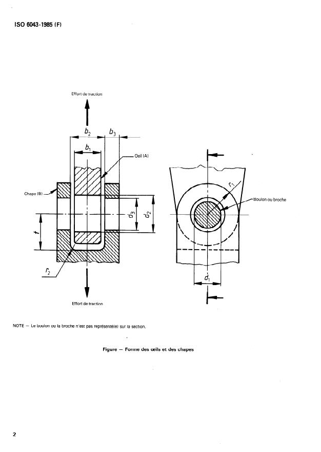 ISO 6043:1985 - Construction navale et structures maritimes -- Assemblages oeil et chape soumis a un effort de traction -- Dimensions principales