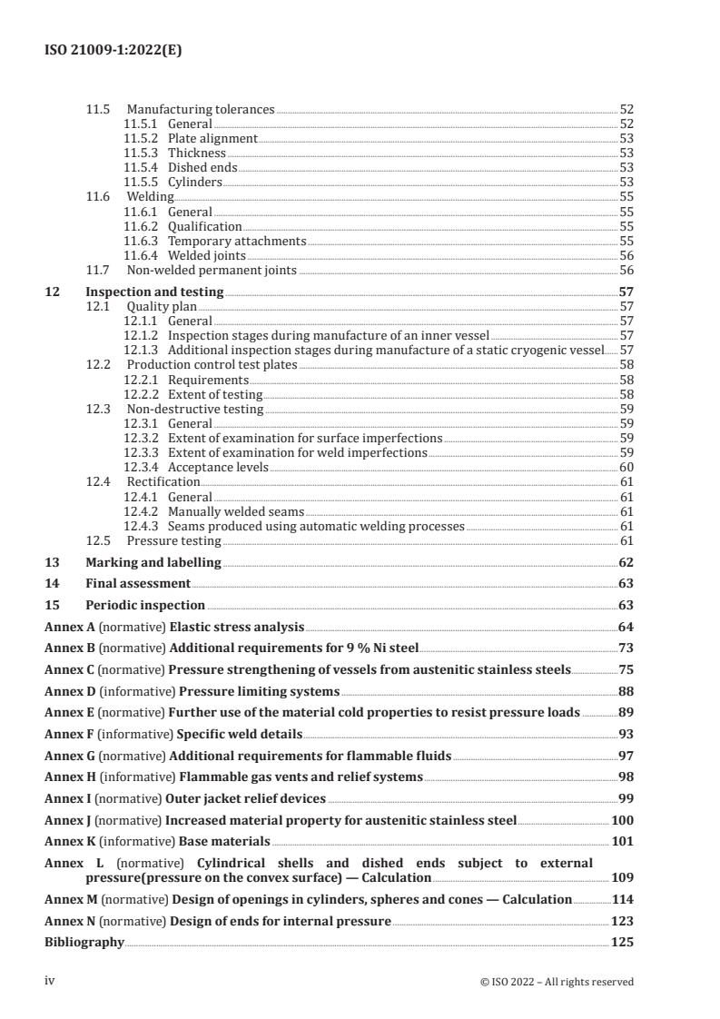 For comprehensive compliance, ISO 21009-1 should be used alongside other standards on pressure vessels, material specifications and safety devices (pressure relief systems, welding codes and low‑temperature material standards). Use this document as the primary reference for vacuum‑insulated cryogenic vessel design, fabrication, inspection and testing.