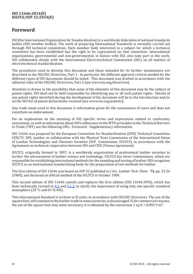 Keywords: ISO 11646:2014, leather measurement area, pin-wheel machine, calibration template, leather conditioning, ISO 2419, area of leather, square metres.