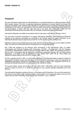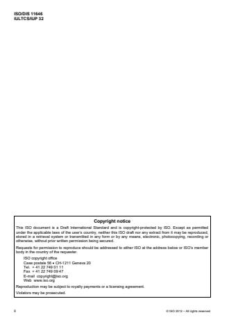 ISO 11646:2014 is a standard published by the International Organization for Standardization (ISO). Its full title is "Leather - Measurement of area". This standard covers: ISO 11646:2014 specifies a method of measuring the area of pieces of leather. It is intended only for the measurement of dressed and other dry flexible leathers.