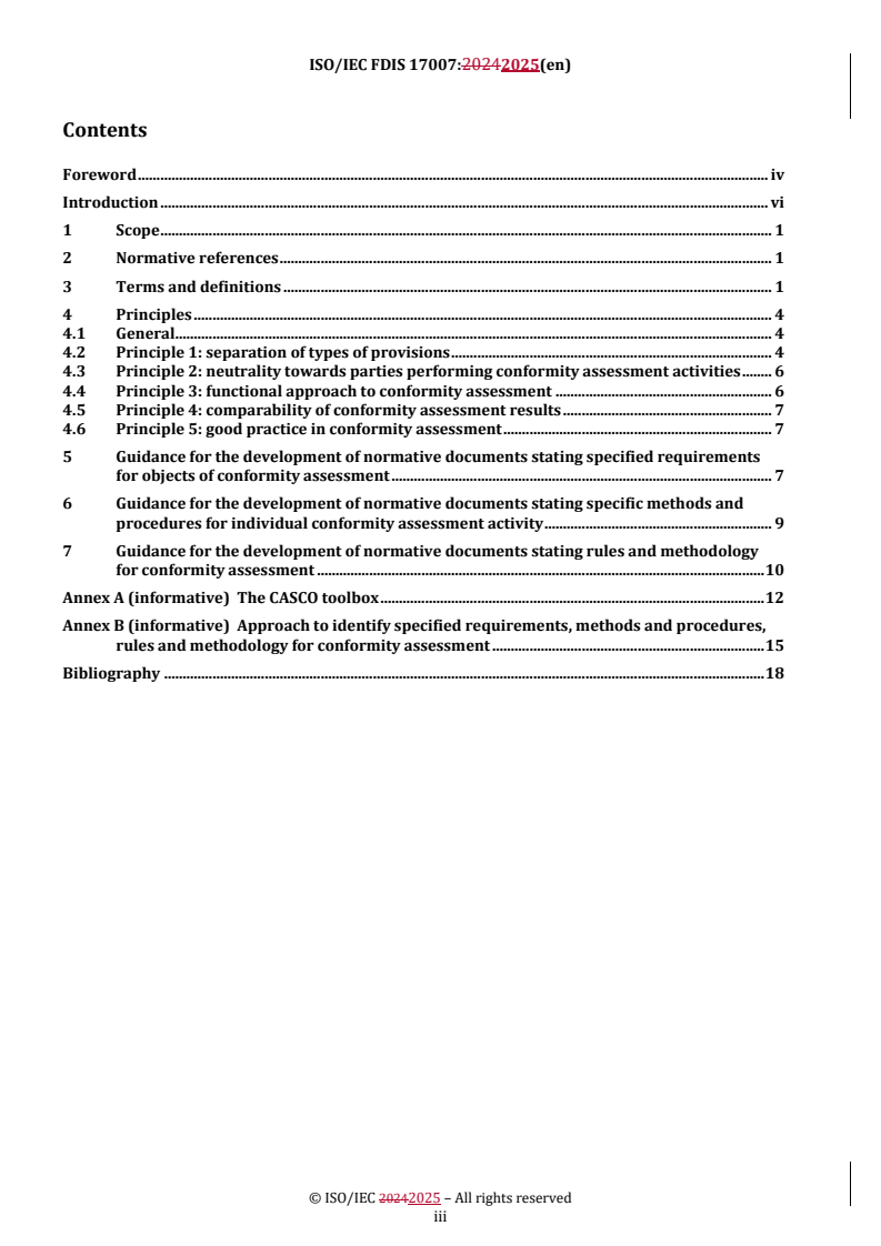 REDLINE ISO/IEC FDIS 17007 - Conformity assessment — Guidance for drafting normative documents suitable for use for conformity assessment Released:24. 07. 2025