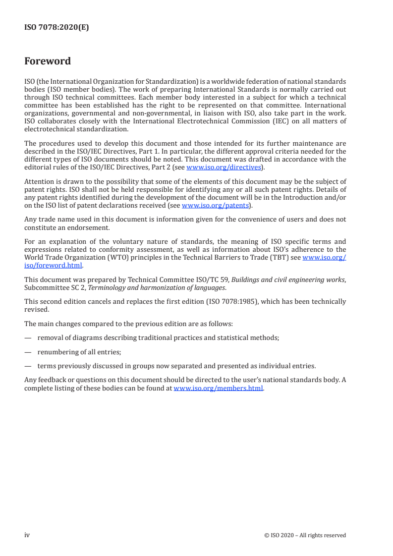 The publication contains a foreword, introduction, bibliography and index; there are no normative references. It was prepared by ISO/TC 59/SC 2 (Terminology and harmonization of languages).