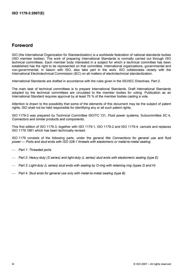 ISO 1179-3:2007 - Connections for general use and fluid power -- Ports and stud ends with ISO 228-1 threads with elastomeric or metal-to-metal sealing