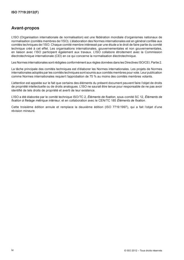 ISO 7719 was prepared by Technical Committee ISO/TC 2, Fasteners, Subcommittee SC 12, Fasteners with