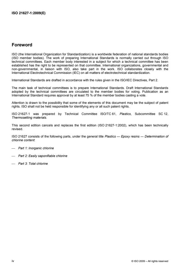 ISO 21627-1:2009 - Plastics -- Epoxy resins -- Determination of chlorine content