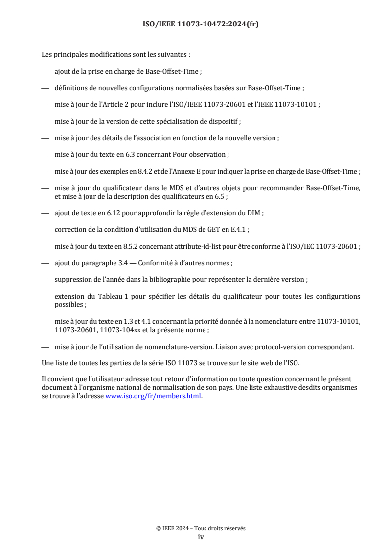 normes existantes, y compris la terminologie et des modèles d’informations de l’ISO/IEEE 11073. Elle spécifie l’utilisation de
