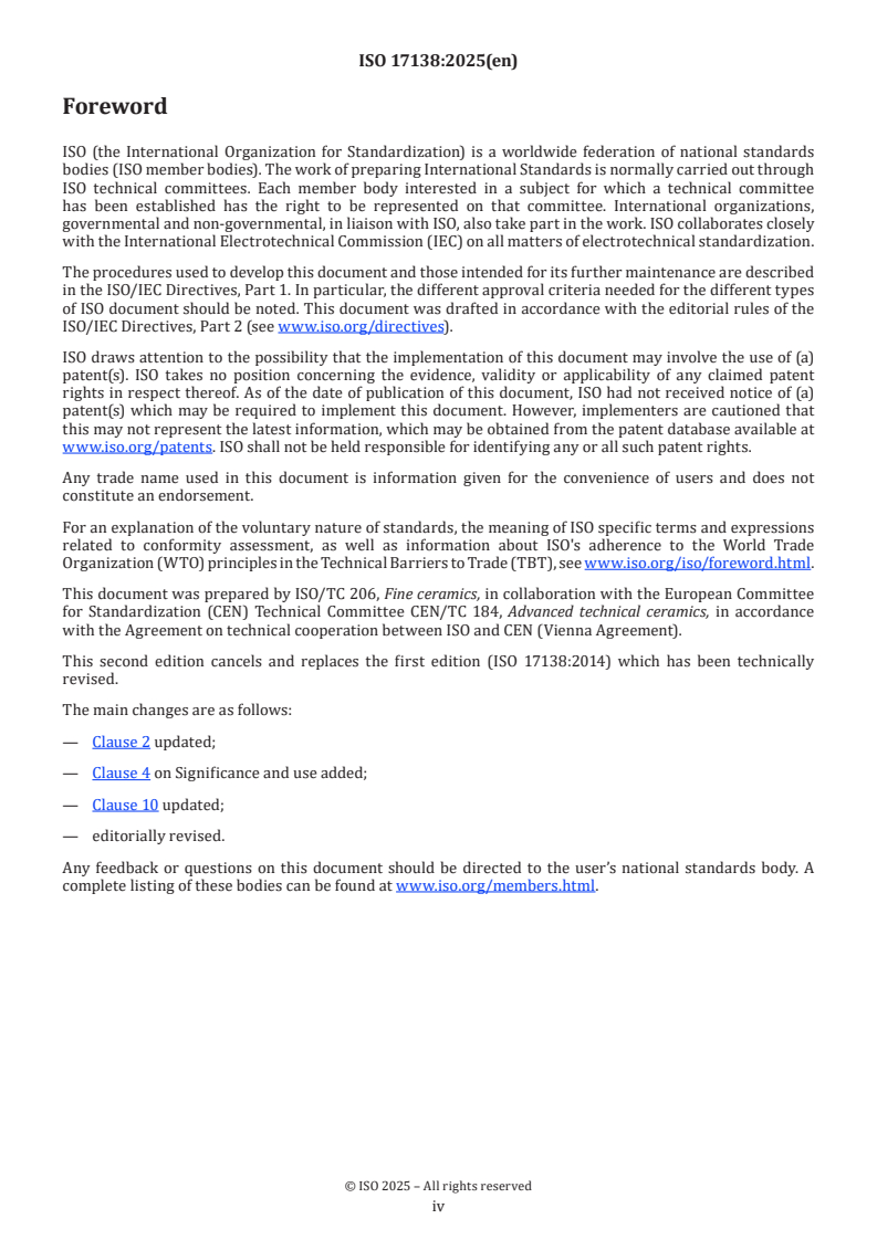 ISO 17138:2025 is classified under the following ICS (International Classification for Standards) categories: 81.060.30 - Advanced ceramics. The ICS classification helps identify the subject area and facilitates finding related standards.
