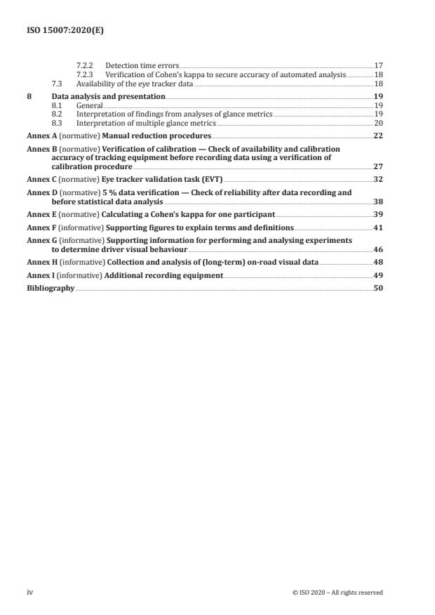 - ISO 15007:2020 integrates and replaces ISO 15007‑1:2014 and ISO/TS 15007‑2:2014. It was prepared by ISO/TC 22/SC 39 (Ergonomics) and includes normative annexes (manual reduction, calibration checks, validation tasks, and reliability verification) to support accurate, comparable driver visual‑behaviour measurement.