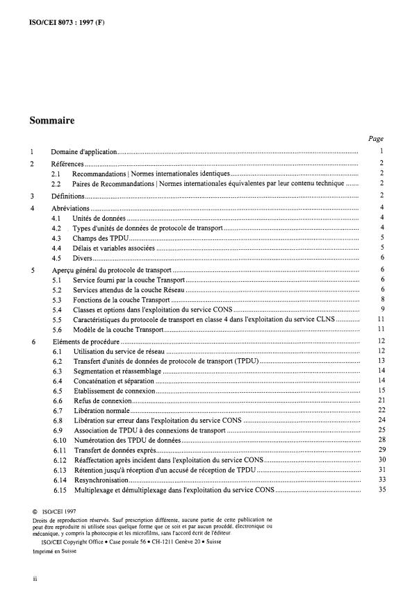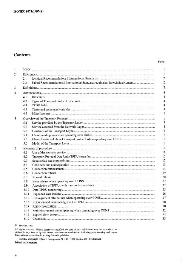 ISO/IEC 8073 documents the protocol elements needed for reliable, connection-mode transport in the OSI model. Major topics include:
