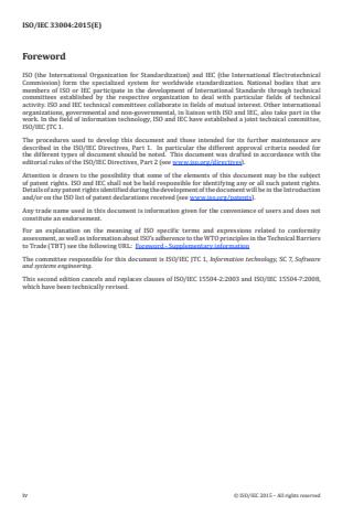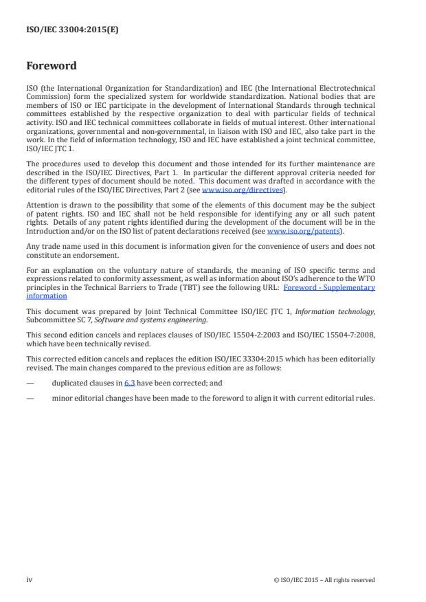 This corrected edition cancels and replaces the edition ISO/IEC 33304:2015 which has been editorially