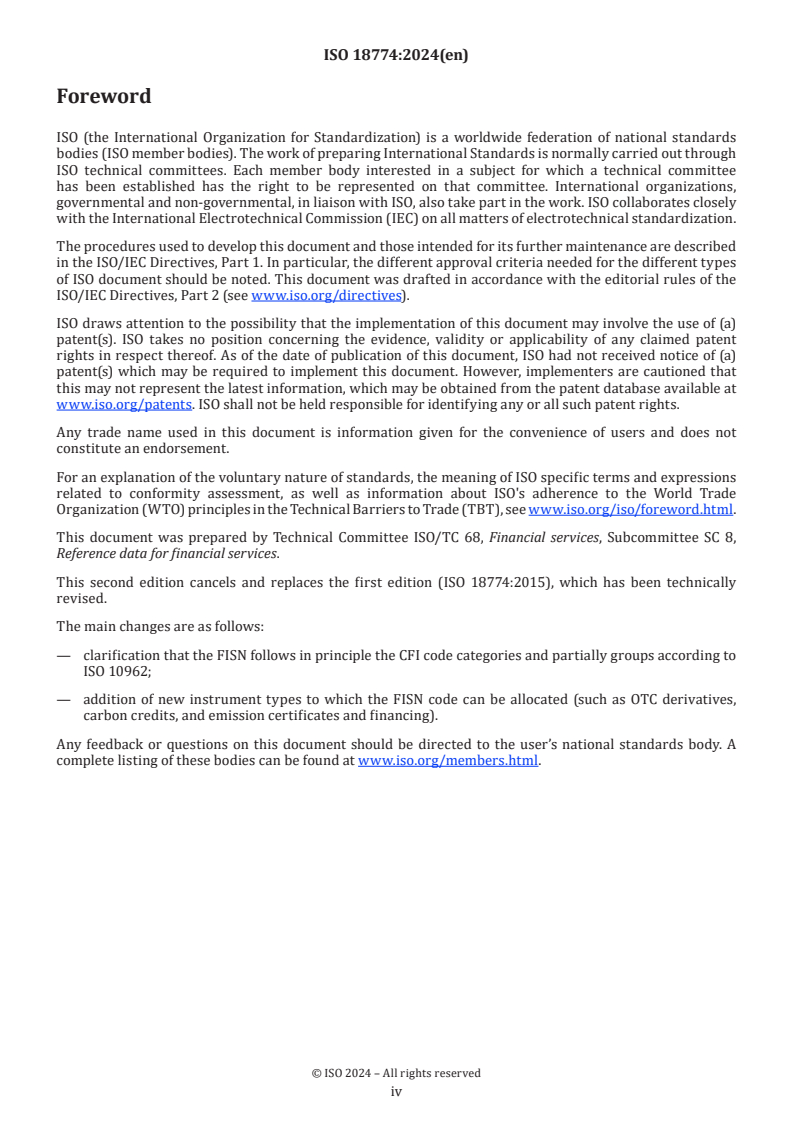 ISO 18774:2024 establishes a comprehensive framework for the creation of Financial Instrument Short Names (FISNs), providing a standardized approach crucial for enhancing clarity and consistency within financial services. The standard's scope is notably extensive, as it applies to a wide array of financial or referential instruments, following guidelines set forth in ISO 10962. This inclusivity allows for a standardized naming convention across various categories of financial instruments, which is essential for their trading and administration. One of the key strengths of ISO 18774:2024 lies in its emphasis on human-readability. In an industry often criticized for its complexity, this standard seeks to simplify the identification of financial instruments, thereby reducing the likelihood of errors and improving efficiency. Furthermore, its design focuses on interoperability, ensuring that the FISN can seamlessly integrate with existing systems and standards. This feature is particularly salient for financial institutions aiming to maintain compliance with evolving regulatory requirements while optimizing their operations. The relevance of ISO 18774:2024 cannot be overstated, especially in the dynamically changing landscape of financial services. As globalization increases trading activity across borders, the need for a standardized method for financial instrument identification becomes increasingly critical. This standard not only promotes uniformity in the market but also aids in enhancing communication among diverse stakeholders, including traders, regulators, and investors. Overall, ISO 18774:2024 presents a valuable contribution to the financial services industry, offering rules for the systematic construction of financial instrument short names that enhance transparency and facilitate a more organized trading ecosystem.