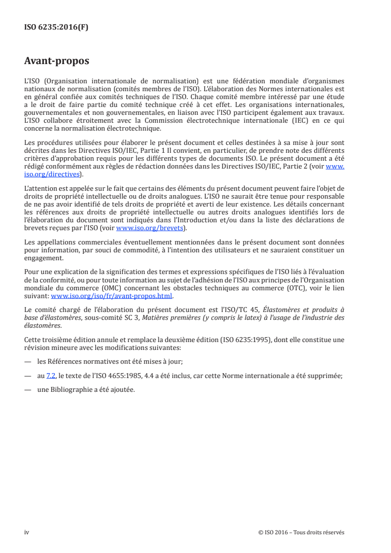 Cette troisième édition annule et remplace la deuxième édition (ISO 6235:1995), dont elle constitue une