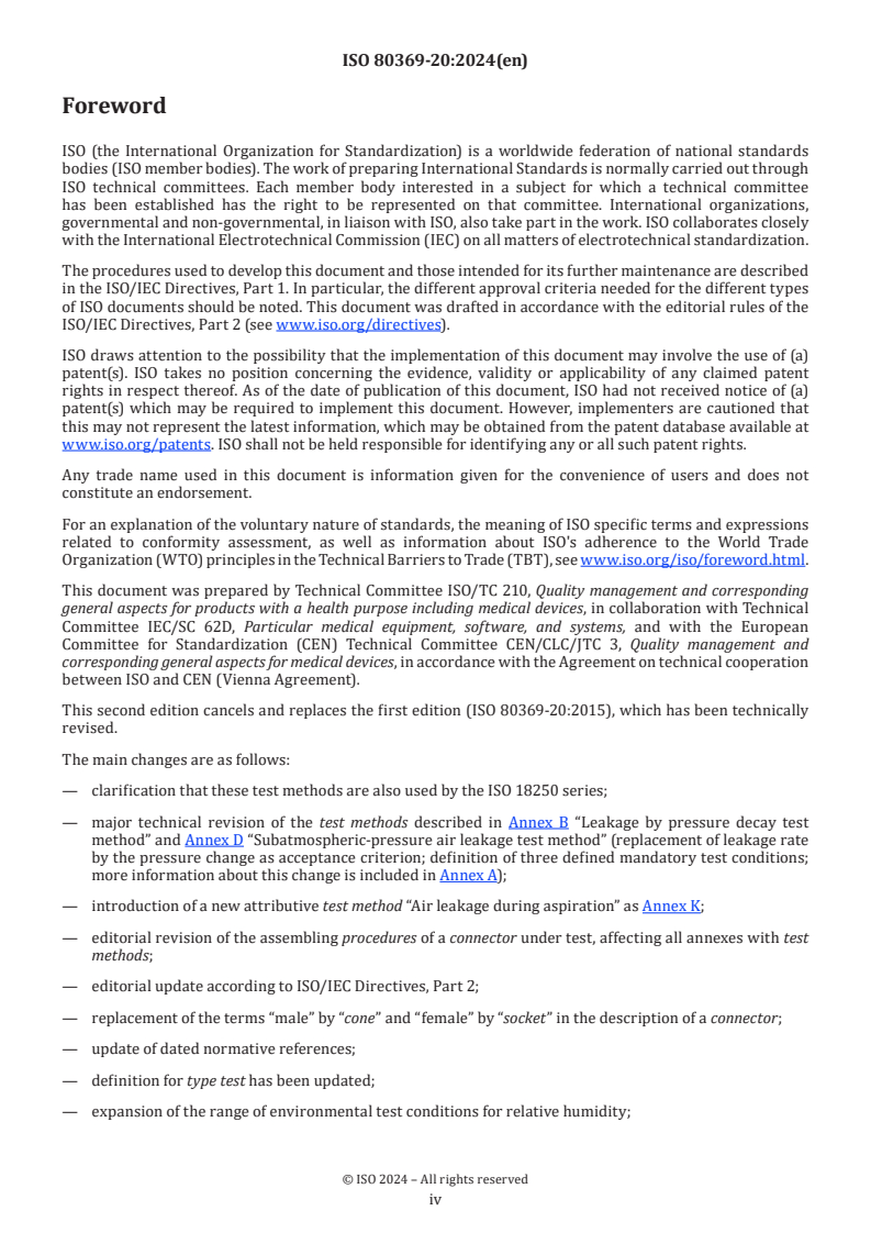 ISO 80369-20:2024 - Small-bore connectors for liquids and gases in healthcare applications — Part 20: Common test methods Released:11/20/2024