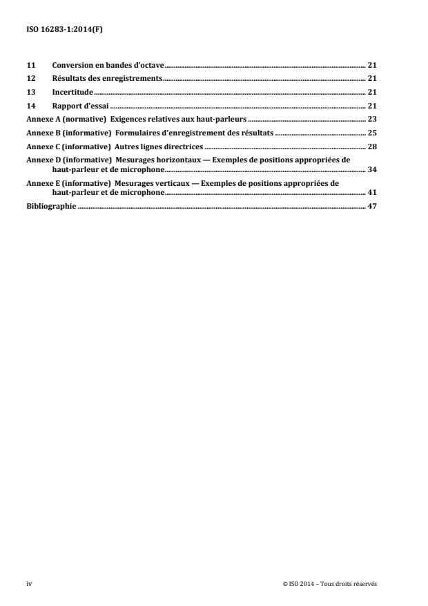 - Annexes: Practical guidance including loudspeaker requirements, example layouts for horizontal/vertical measurements, and forms for recording results.