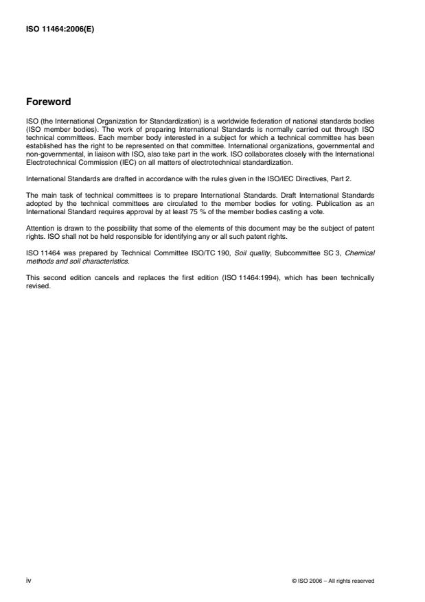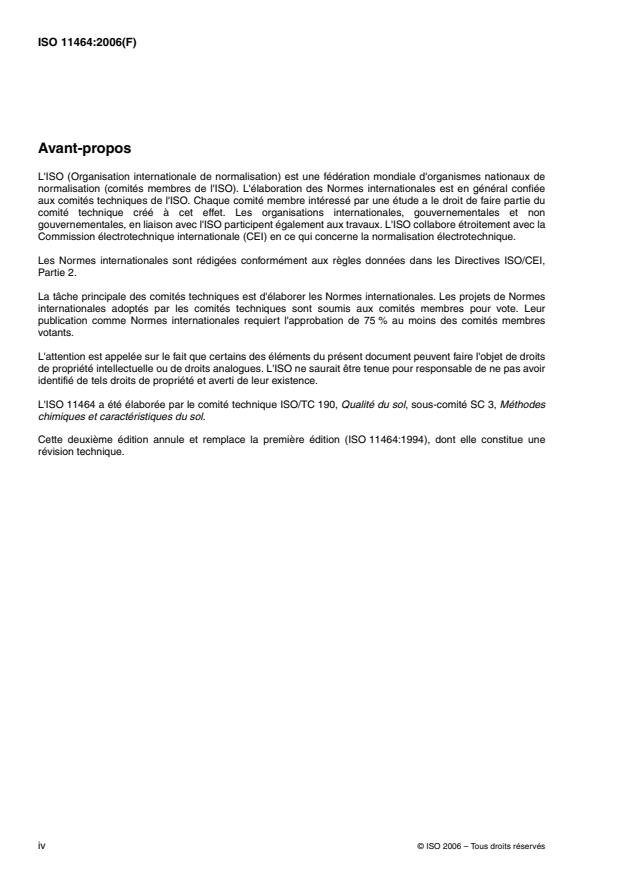 L'ISO 11464 a été élaborée par le comité technique ISO/TC 190, Qualité du sol, sous-comité SC 3, Méthodes