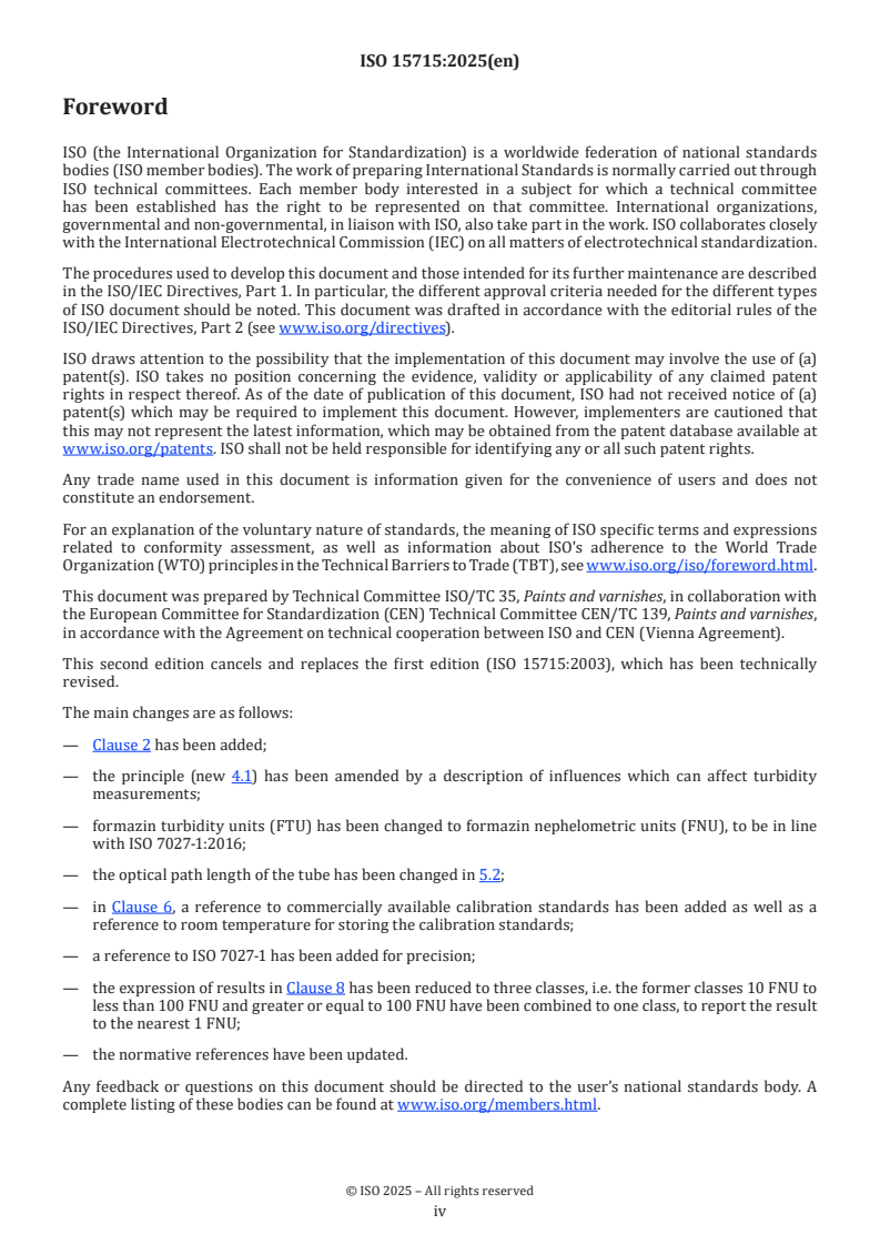 Keywords: ISO 15715:2025, turbidity, FNU, formazin nephelometric units, turbidimeter, binders for paints and varnishes, turbidity measurement, clear coatings quality control.