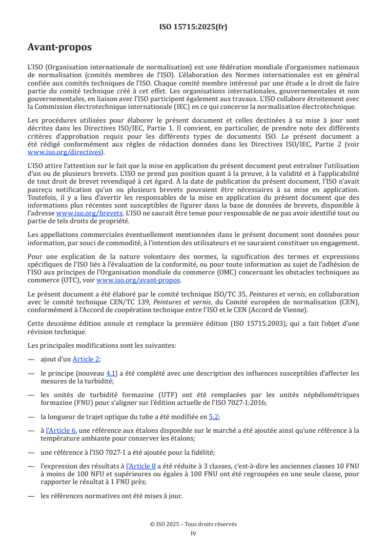 ISO 15715:2025 - Liants pour peintures et vernis — Détermination de la turbidité Released:10. 07. 2025