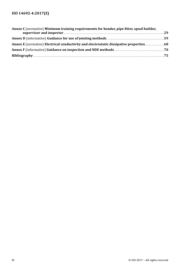 Keywords: ISO 14692-4:2017, GRP piping, glass-reinforced plastics, petroleum, natural gas, fabrication, installation, inspection, pressure testing, maintenance, repair, earthing, jointing.