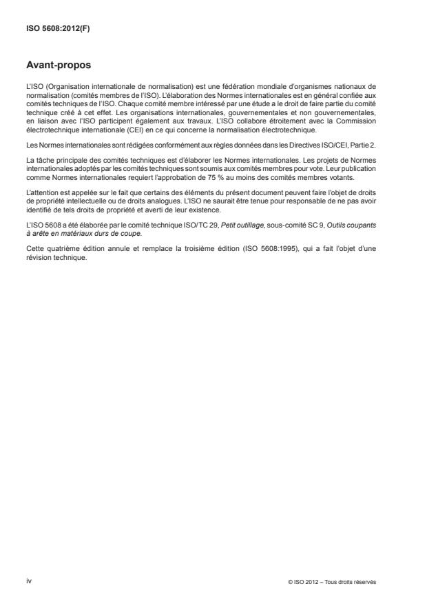 L’ISO 5608 a été élaborée par le comité technique ISO/TC 29, Petit outillage, sous-comité SC 9, Outils coupants